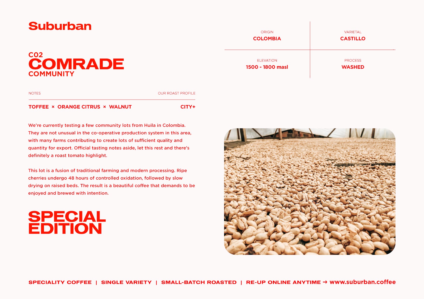 Supporting a community lot has been a priority for a while and we really love this juicy local mutation of Castilio from Colombia. The farming is super high quality - especially for a community organisation - and the processing is peerless. We love the roast tomato notes on this bean, but it is still an everyday-drinker. Enjoy!