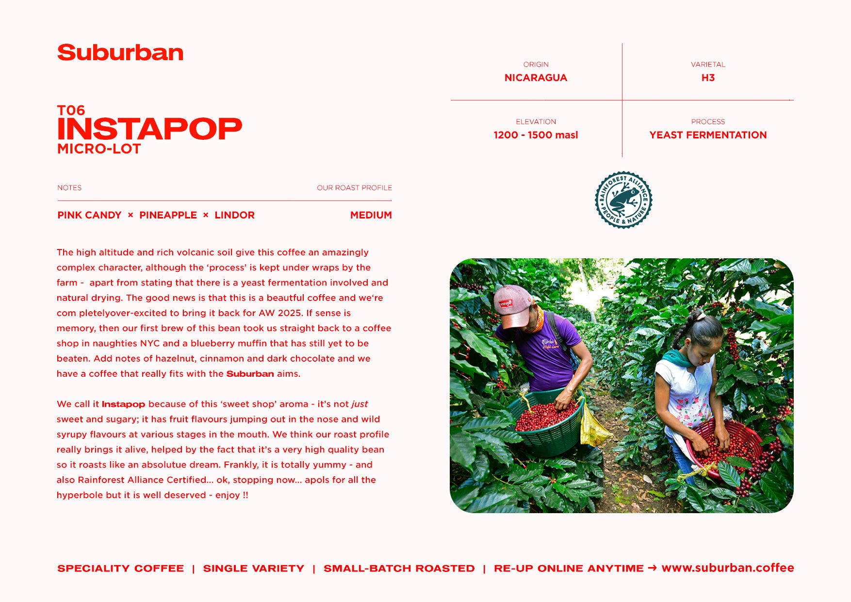We're delighted to RE-STOCK one of our bestsellers from last year - put your hands together for INSTAPOP! The new harvest is equally as good as last year and the processing is ⭐️⭐️⭐️⭐️⭐️ - not only because of the yeast fermented method but also the shear consistency of the bean in terms of size and structure. Micro-lot coffee really shines when there is this attention to detail and the result is - once again - a fruity coffee which is smooth and mellow. INSTAPOP is super for filter and lush as espresso, especially for daily use.